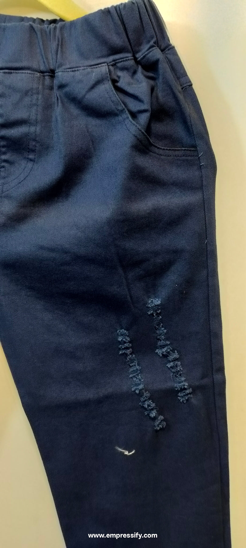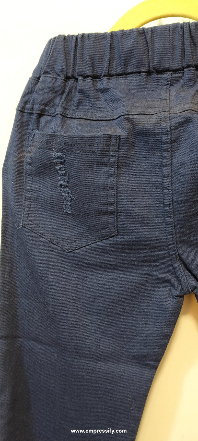 NAVY BLUE KIDS JEANS WITH POCKETS, ankle length denim pants, 2 front and 2 back pockets.