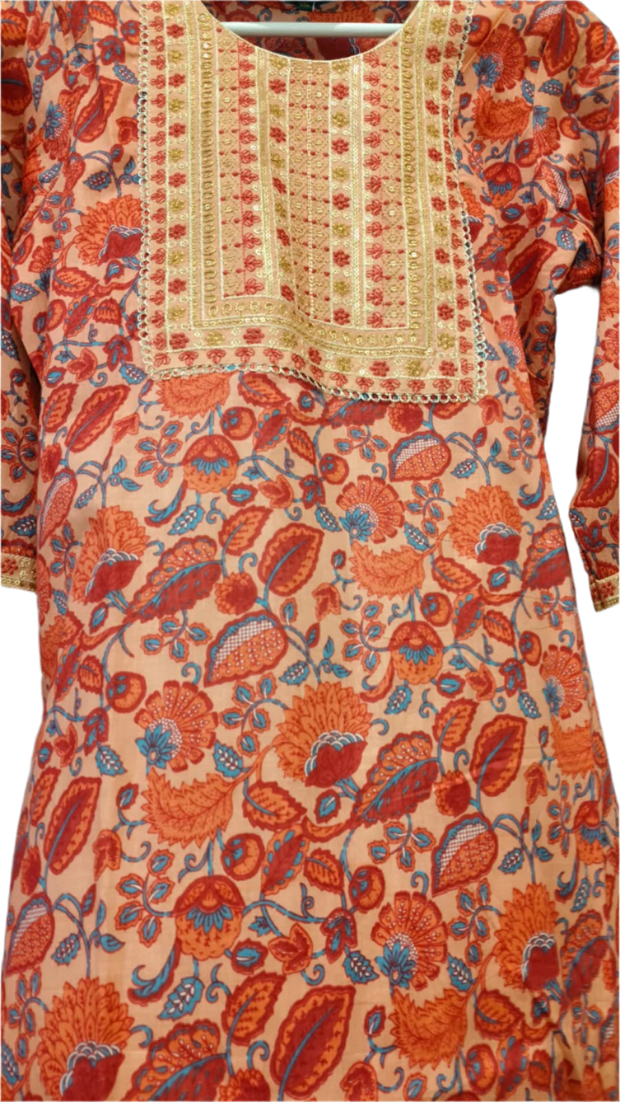 PEACH AJRAKH PRINT JAIPURI COTTON SET