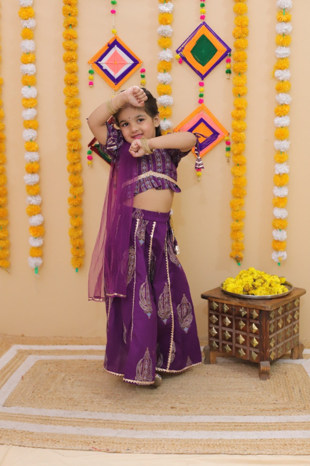 KIDS FESTIVE WEAR FOR KIDS - LITTLE ROYALS-GIRLS THIS SOFT DARK WINE COLOR, PURE COTTON LEHENGA CHOLI SET IS PERFECT FOR AN INDIAN TRADITIONAL SET UP WITH FESTIVE OUTFITS. GOTTA PATTI WORK