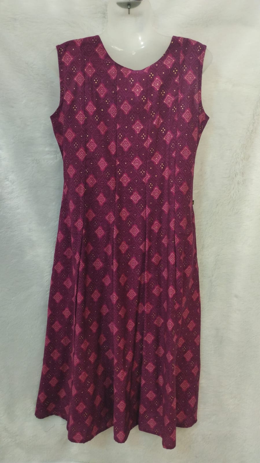 PINK DIAMOND PRINT ON MAROON A-LINE INDO WESTERN DRESS soft MODAL CHANDERI silk, foil print. To be worn as a dress or Can be worn with comfort with straight pants or leggings or jeans. Round neck and sleeves available