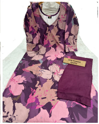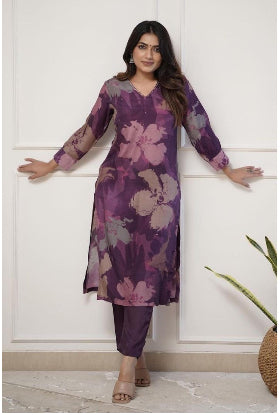 WOMEN'S COORDS, KURTA PANTS SET, WOMEN MUSLIN MAROON KURTA PANTS SET WITH V NECK WORK ON SOFT KURTA PANTS SET 3/4TH SLEEVES , STRAIGHT PANTS, STRAIGHT CUT