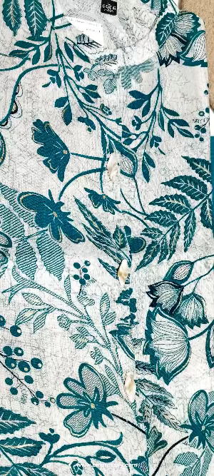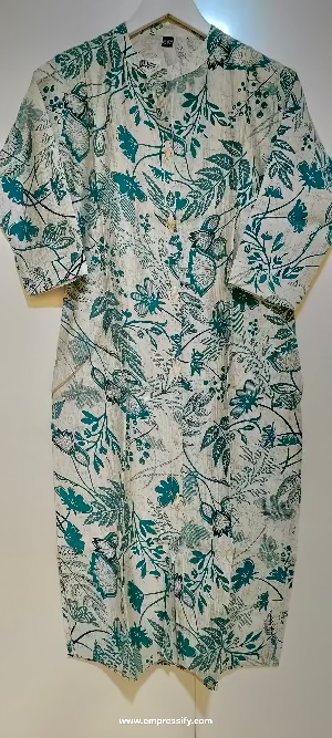 WOMEN'S ETHNIC COORDS in a classy combination of green with white floral print shirt style top and stylish comfortable, palazzo pants with elasticated band, 3/4th sleeves.